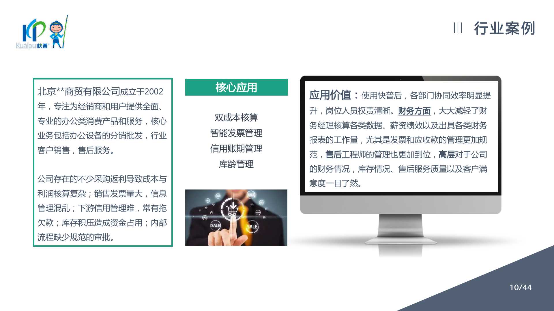 適用:產(chǎn)品分銷(xiāo)、零售行業(yè)、系統(tǒng)集成、行業(yè)銷(xiāo)售等各類(lèi)型商貿(mào)企業(yè)。