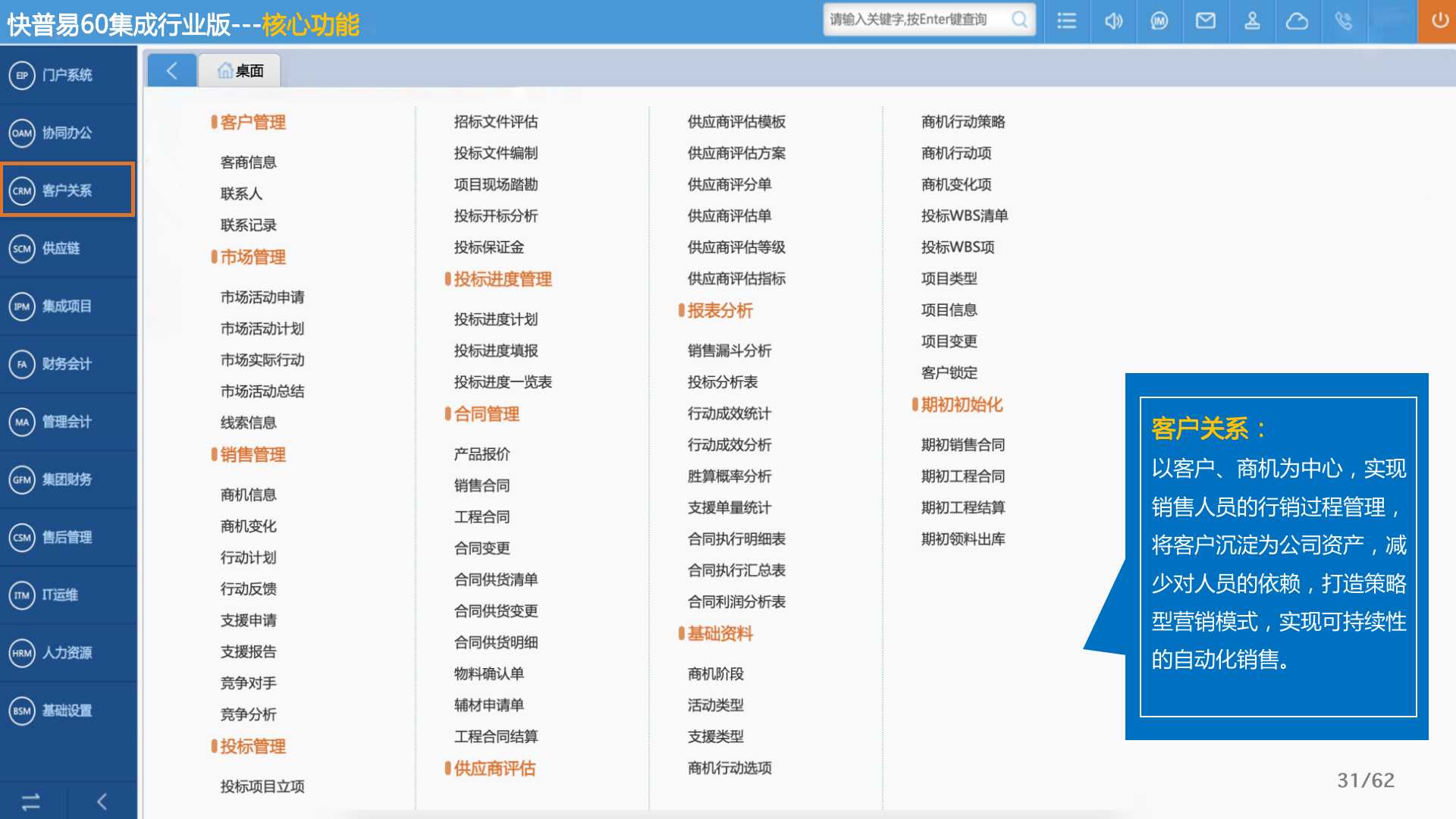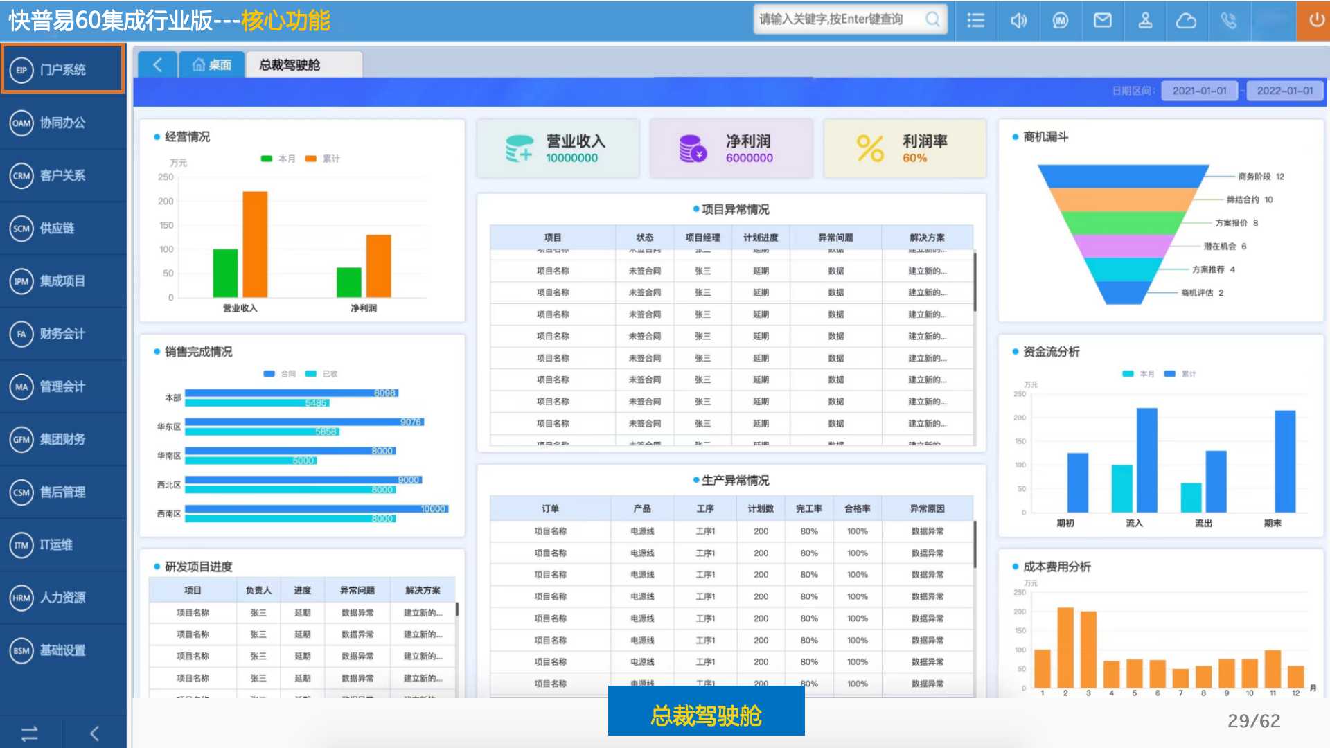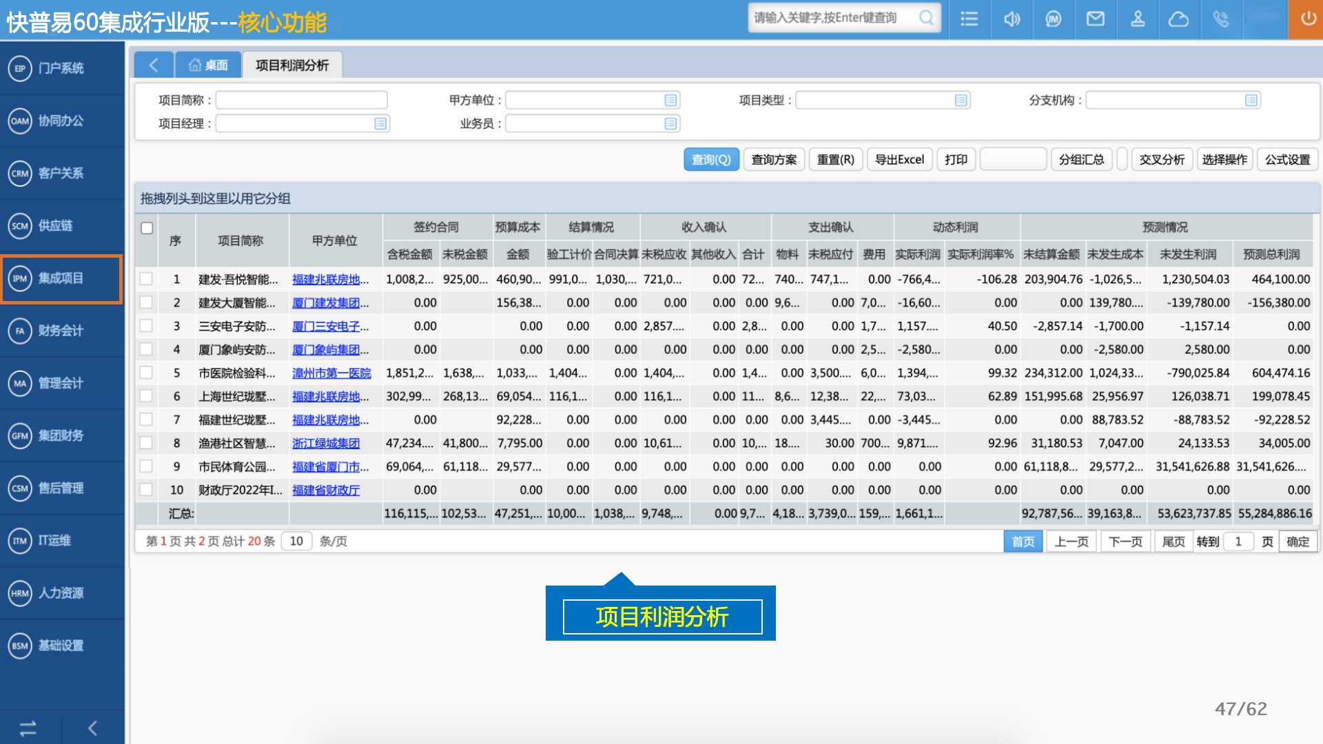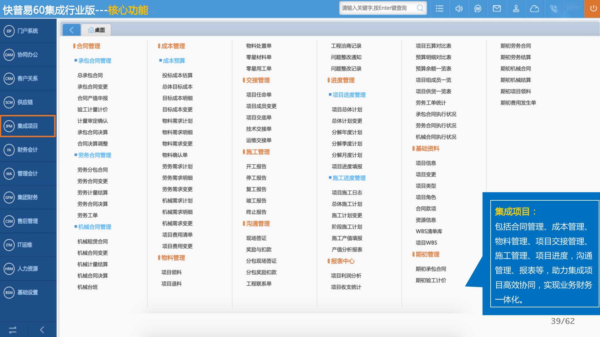 快普易60以客戶為目標(biāo)、以項(xiàng)目為核心,為集成行業(yè)提供數(shù)字化管理解決方案,為組織和業(yè)務(wù)提效,實(shí)現(xiàn)項(xiàng)目全過(guò)程管控,有效控制成本,并按項(xiàng)目自動(dòng)進(jìn)行內(nèi)部核算,提升項(xiàng)目的盈利能力,為企業(yè)打造可持續(xù)發(fā)展的經(jīng)營(yíng)模式。