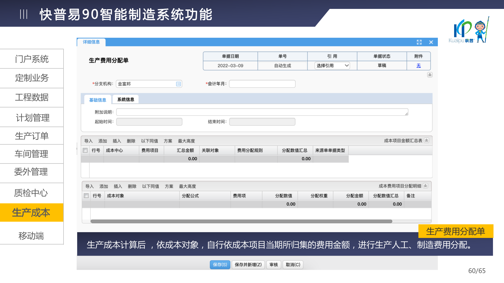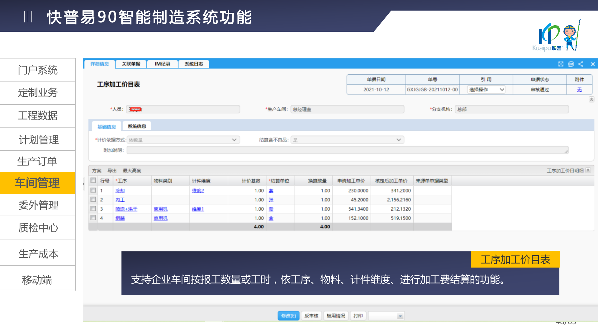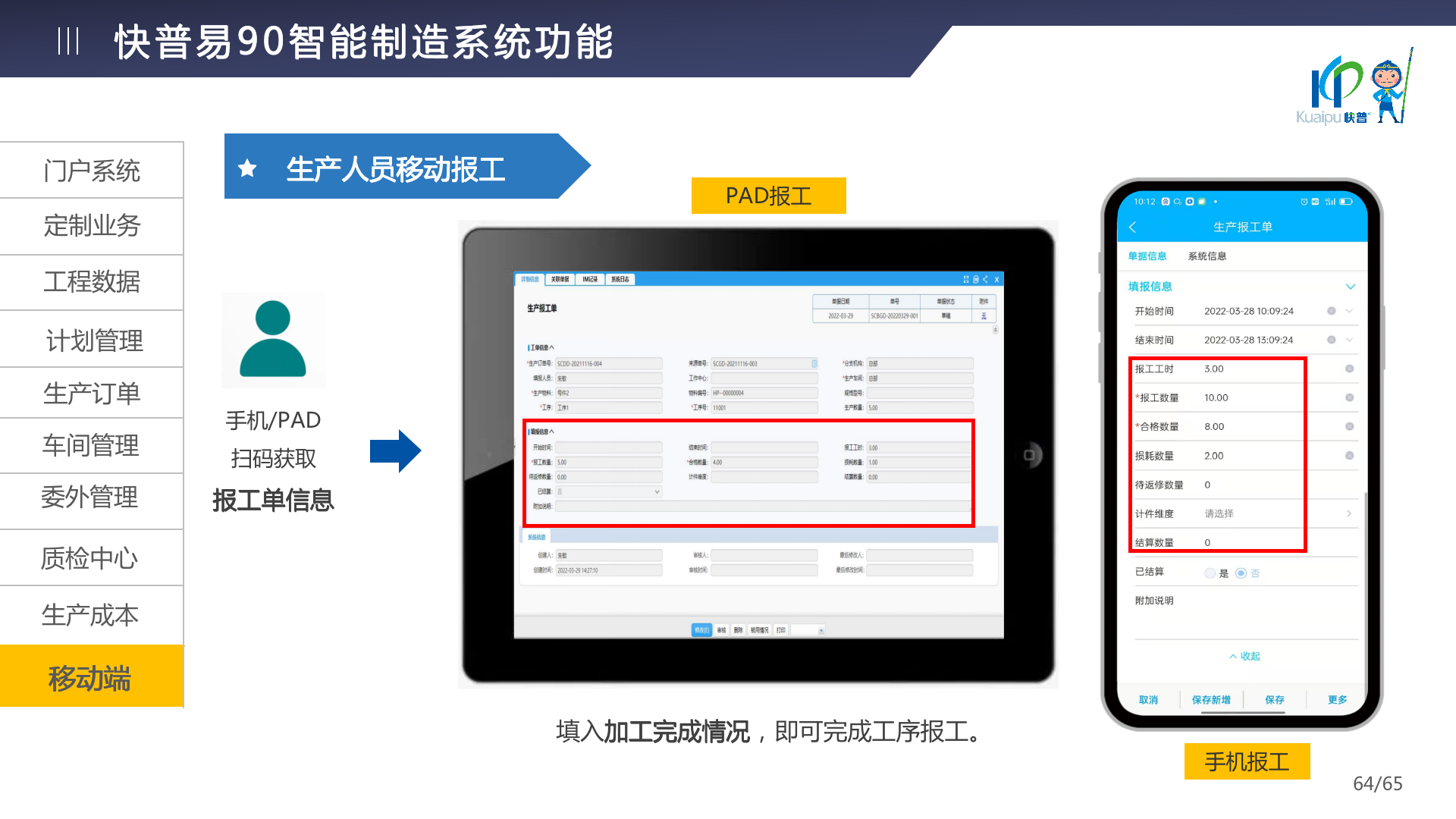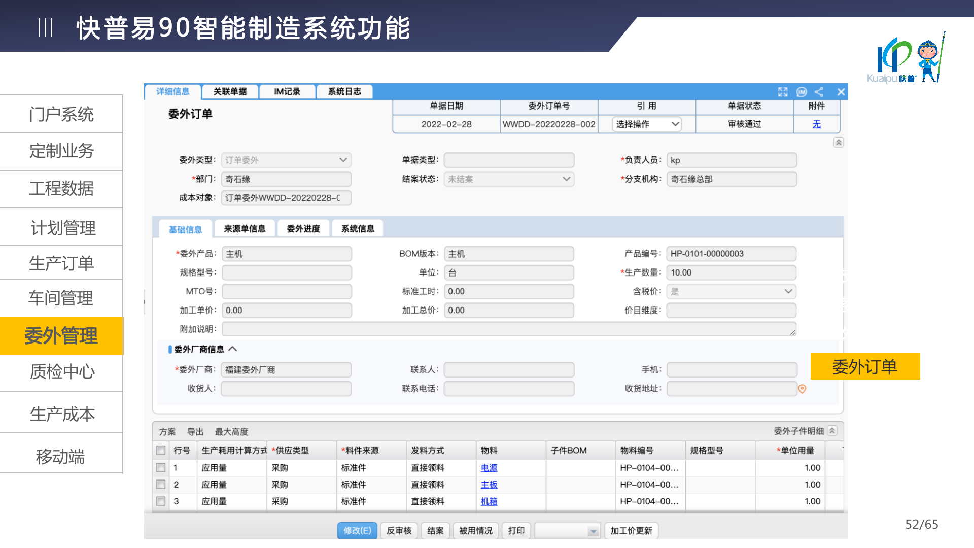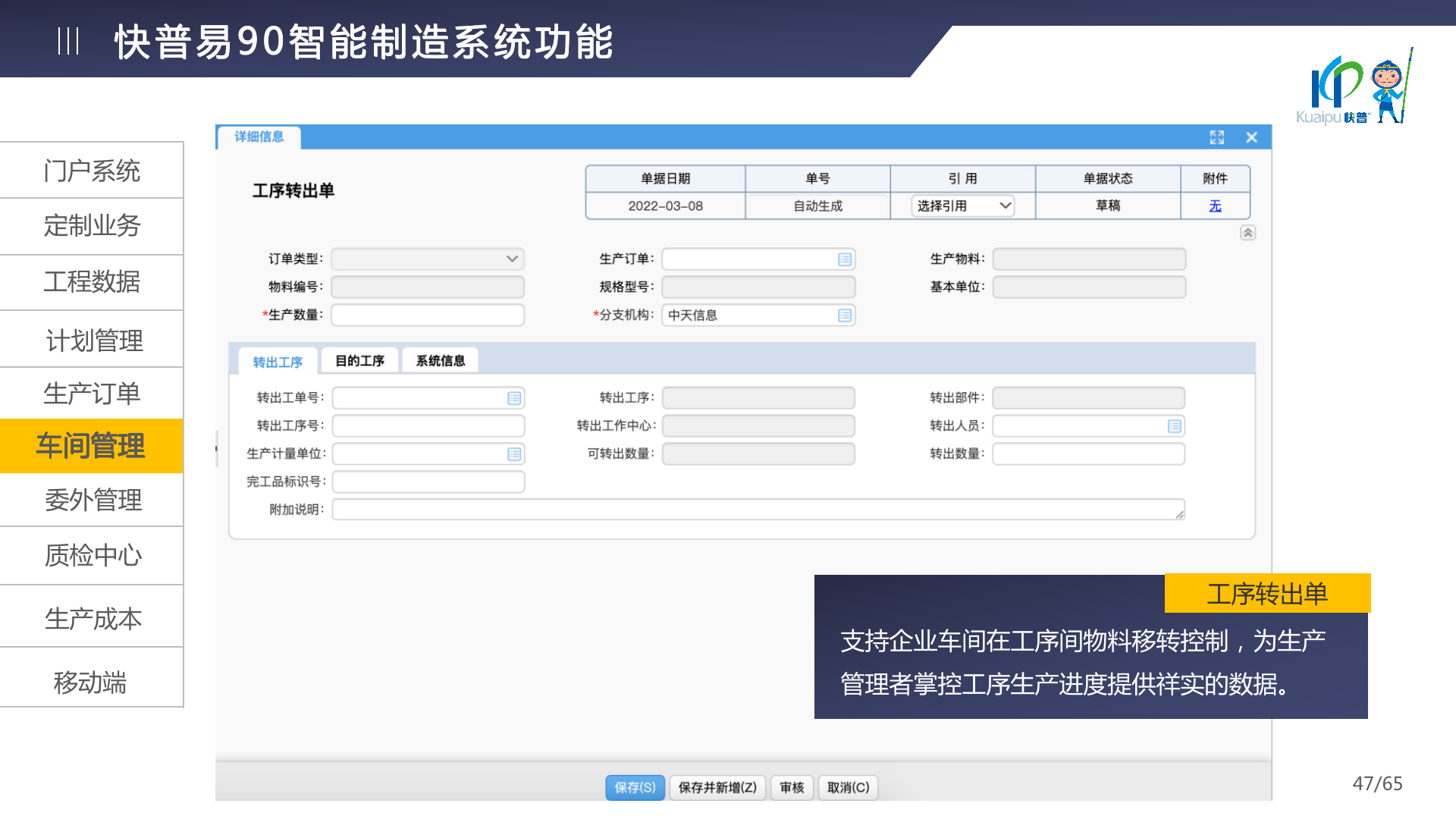 快普易90融合了大量精益生產(chǎn)管理的經(jīng)驗(yàn),涵蓋計(jì)劃管理、BOM管理、MRP運(yùn)算、生產(chǎn)訂單管理、供應(yīng)鏈管理、車(chē)間管理、出入庫(kù)管理、委外管理、質(zhì)量管理、生產(chǎn)成本核算、報(bào)表分析等全面生產(chǎn)管理,為企業(yè)打造實(shí)時(shí)感知變化、分析變化、提供決策的數(shù)字化管理平臺(tái),推動(dòng)企業(yè)創(chuàng)新的管理,實(shí)現(xiàn)“智能制造”的數(shù)字化轉(zhuǎn)型。