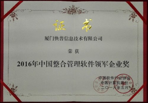廈門快普連續(xù)五年受邀參加軟博會。廈門快普作為中國整合管理的倡導(dǎo)者、推動者和領(lǐng)導(dǎo)者,在公司創(chuàng)立時就將“整合管理”作為企業(yè)的發(fā)展戰(zhàn)略,并戰(zhàn)略性地提出:“將整合進(jìn)行到底,把整合做到極致,讓所有企業(yè)實(shí)施整合管理”,立志成為中國企業(yè)整合管理專家,堅持把最前沿、最創(chuàng)新、最復(fù)雜、最有想法、含金量最高的IT行業(yè)作為公司發(fā)展的戰(zhàn)略性行業(yè),長期專注為系統(tǒng)集成企業(yè)、軟件企業(yè)、智能化企業(yè)、工程企業(yè)及高新技術(shù)企業(yè)等這些關(guān)聯(lián)度很高的行業(yè)提供整體管理解決方案,用盡可能低的成本解決這些前沿創(chuàng)新的經(jīng)營管理模式,幫助這些企業(yè)實(shí)現(xiàn)管理升級,因此榮獲“2016年度中國整合管理軟件領(lǐng)軍企業(yè)獎”,廈門快普董事長溫祝平先生同時榮獲“2016年度中國整合管理軟件領(lǐng)軍人物獎”!