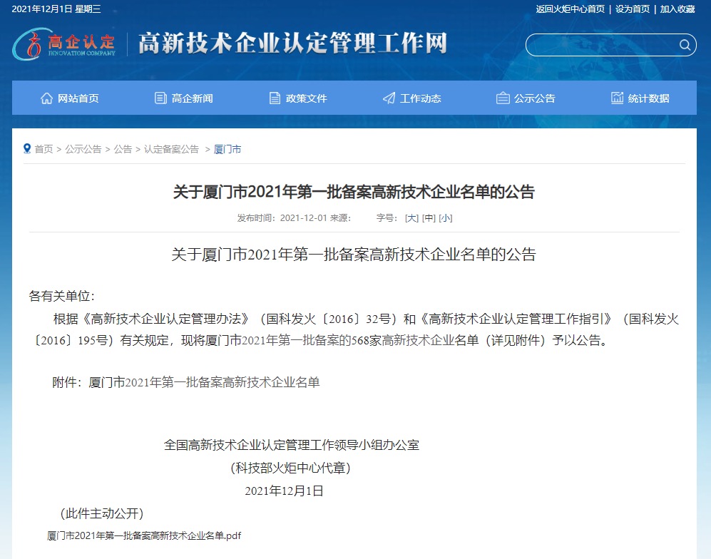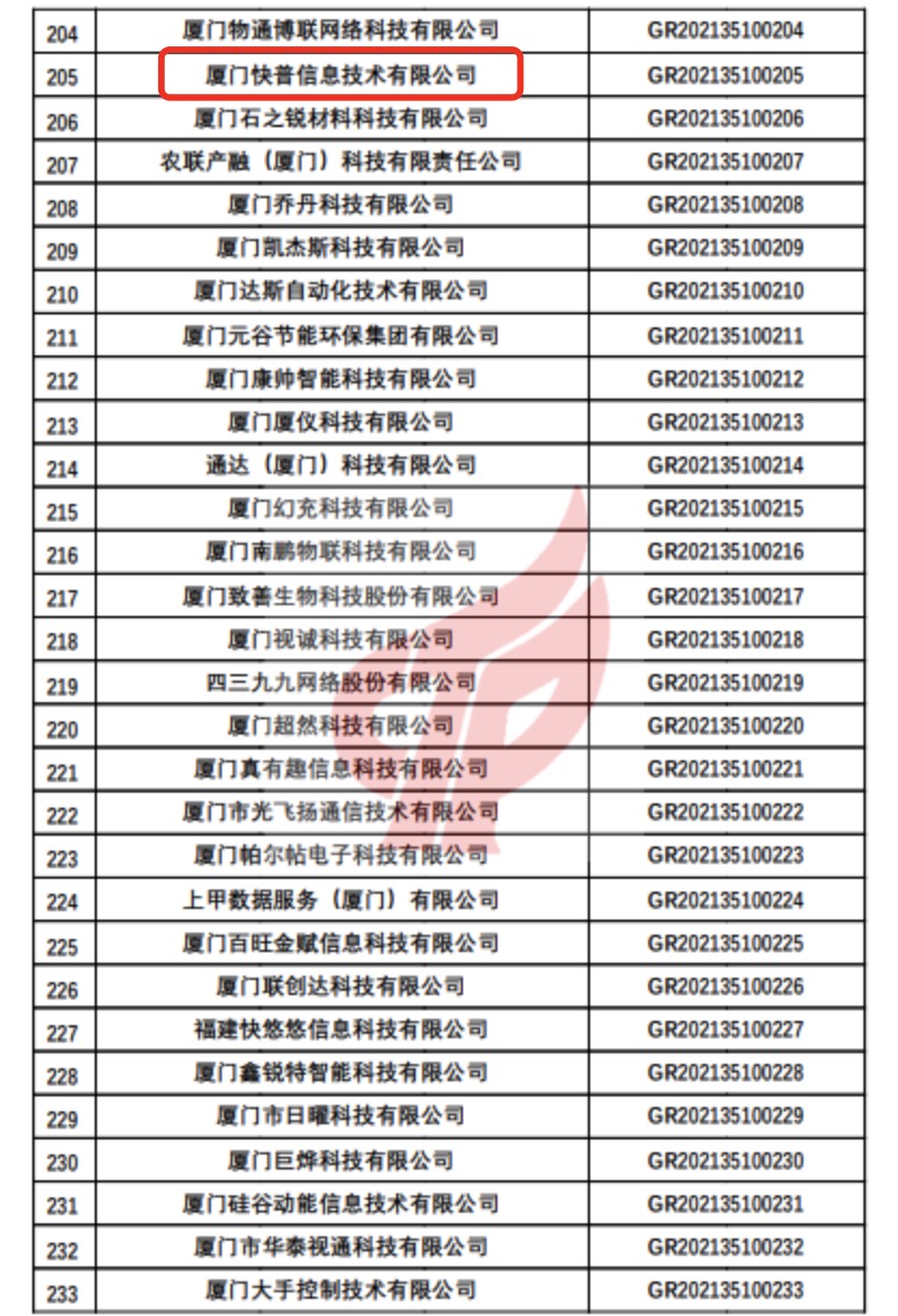 自接到廈門市科技局發(fā)出的高新技術企業(yè)申報通知后,廈門快普踴躍報名,積極配合申報工作,認真準備申報材料。經合規(guī)性審查、專家評審、市高新技術企業(yè)認定管理辦公室聯合審核,廈門市上報的第一批備案國家級高企名單在國家高新技術企業(yè)認定管理工作網上公示,廈門快普憑借穩(wěn)健的經營表現和先進的技術實力位列榜單,并獲得正式批復!